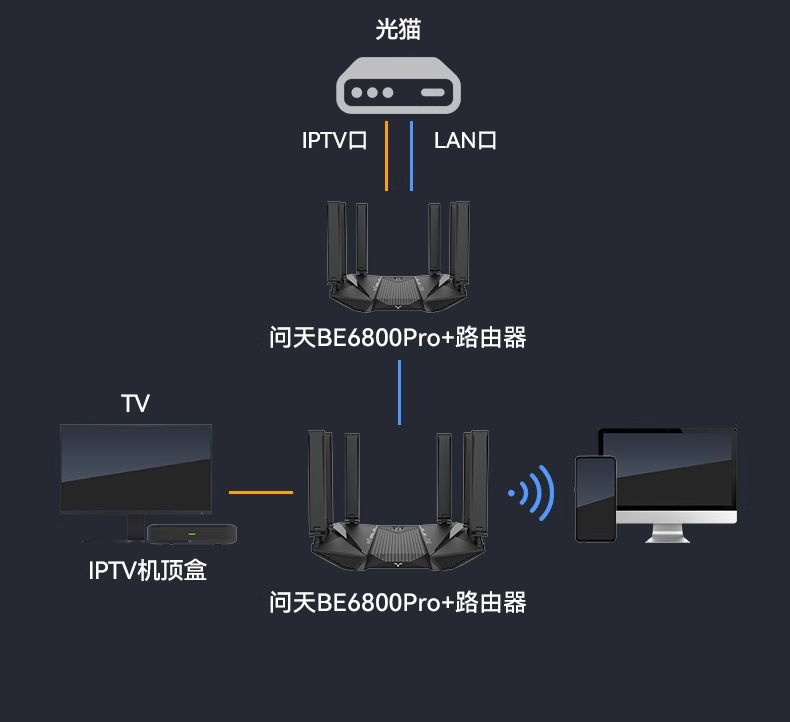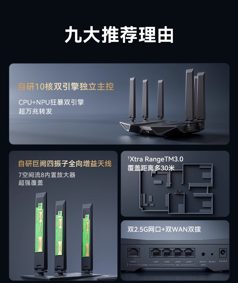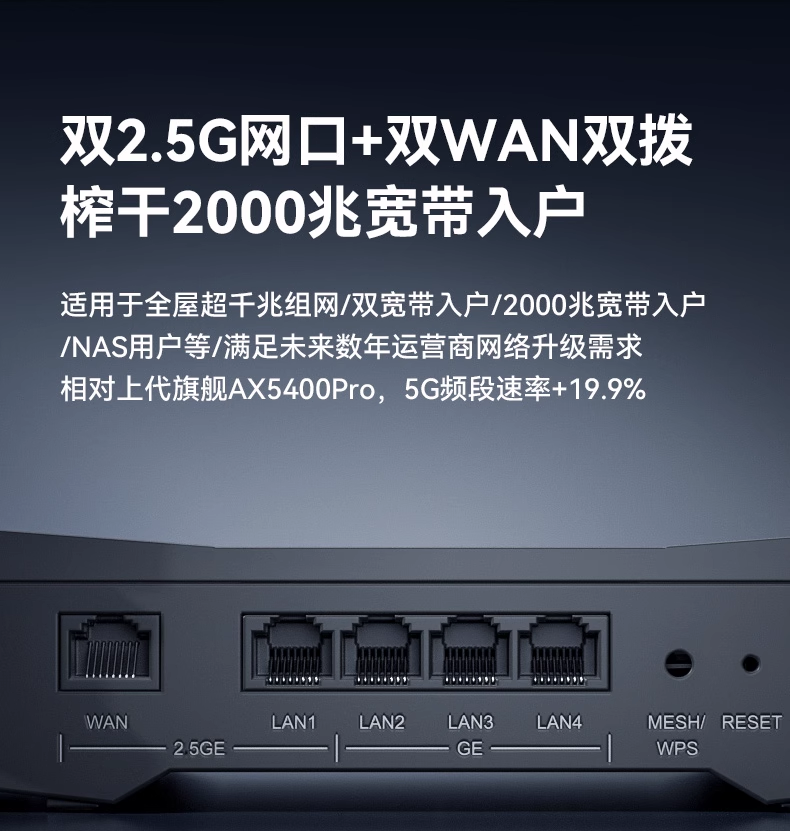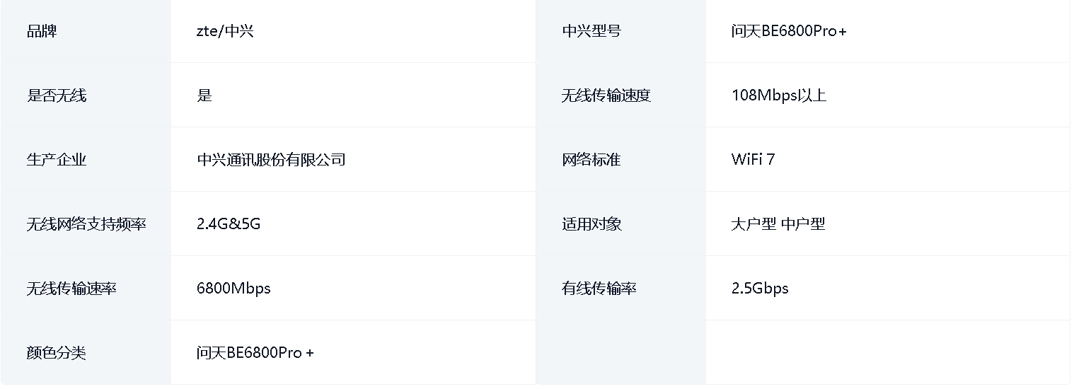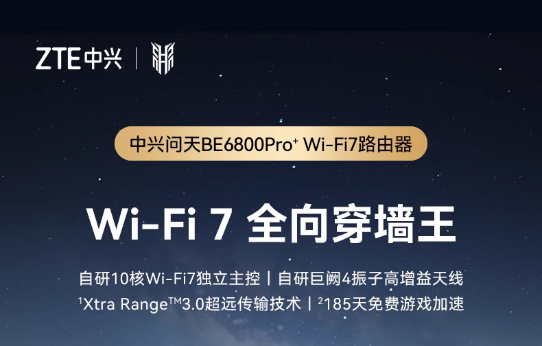 ZTE中兴问天路由器BE6800Pro+双2.5G网口WiFi7千兆双频路由器全屋大户型子母路由高速穿墙游戏电竞mesh组网